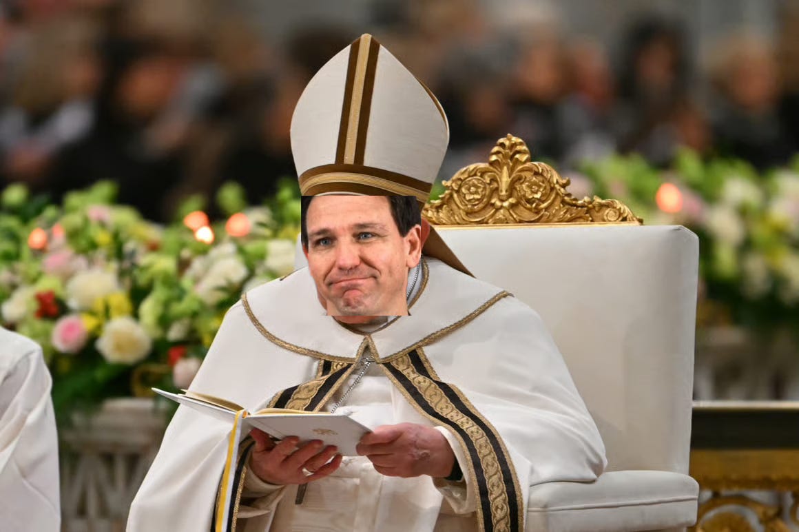 Since DeSantis is stepping down as governor because, thankfully, term limits, I wonder if he could appoint himself Pope of Florida? The various pope hats might attract Ron to the position as they would offer him that extra height he has been seeking.