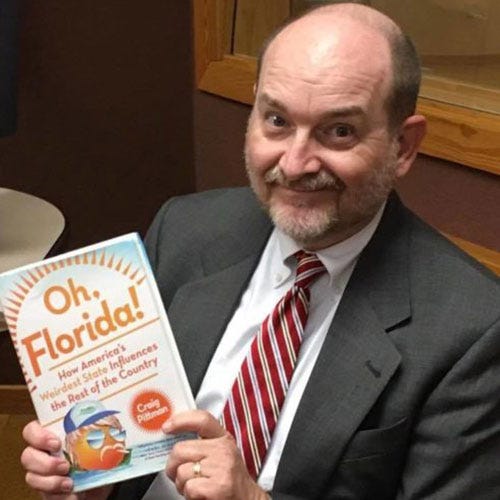A few years ago, I spent two weeks driving around Florida, from Key West to Pensacola — and dozens of points in between — researching odd destinations for my novel Florida Man, the second book in The Strange Files series. All during this long, meandering road trip, I listened to and was informed by Craig Pittman’s Oh, Florida! I’m delighted to share some of Craig’s work here today on Tropic Press, and I want to take this opportunity to thank him for helping make that journey through the Gunshine State such a pleasure.