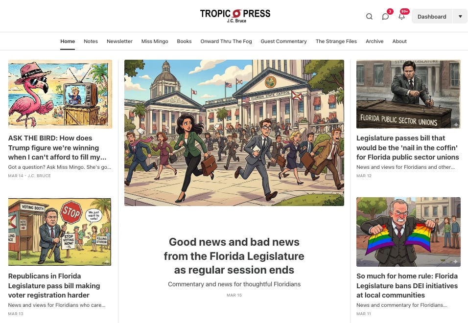It’s easy to feel overwhelmed if you are a rational person living in the Free State of Florida, but there are plenty of smart, reasonable people just like you here. The purpose of this newsletter and the Tropic Press website is to provide a source of news and commentary that shines a light through this irrational fog.