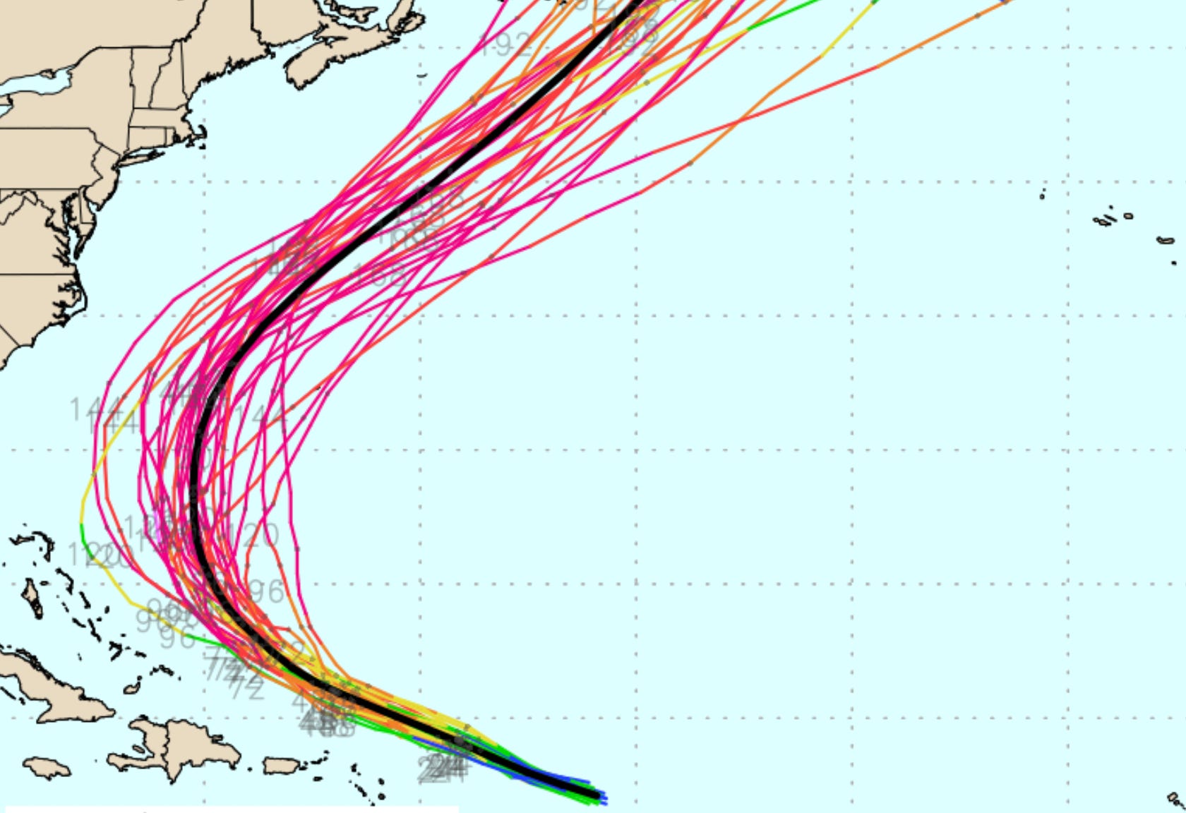 Erin is now officially the first hurricane of 2025. Her path will take her clear of the American coastline if the tracking models (above) hold true. Still, she is forecast to become a major storm and coastal areas in the Caribbean and East Coast will need to be mindful of riptides and dangerous currents, according to the National Hurricane Center.