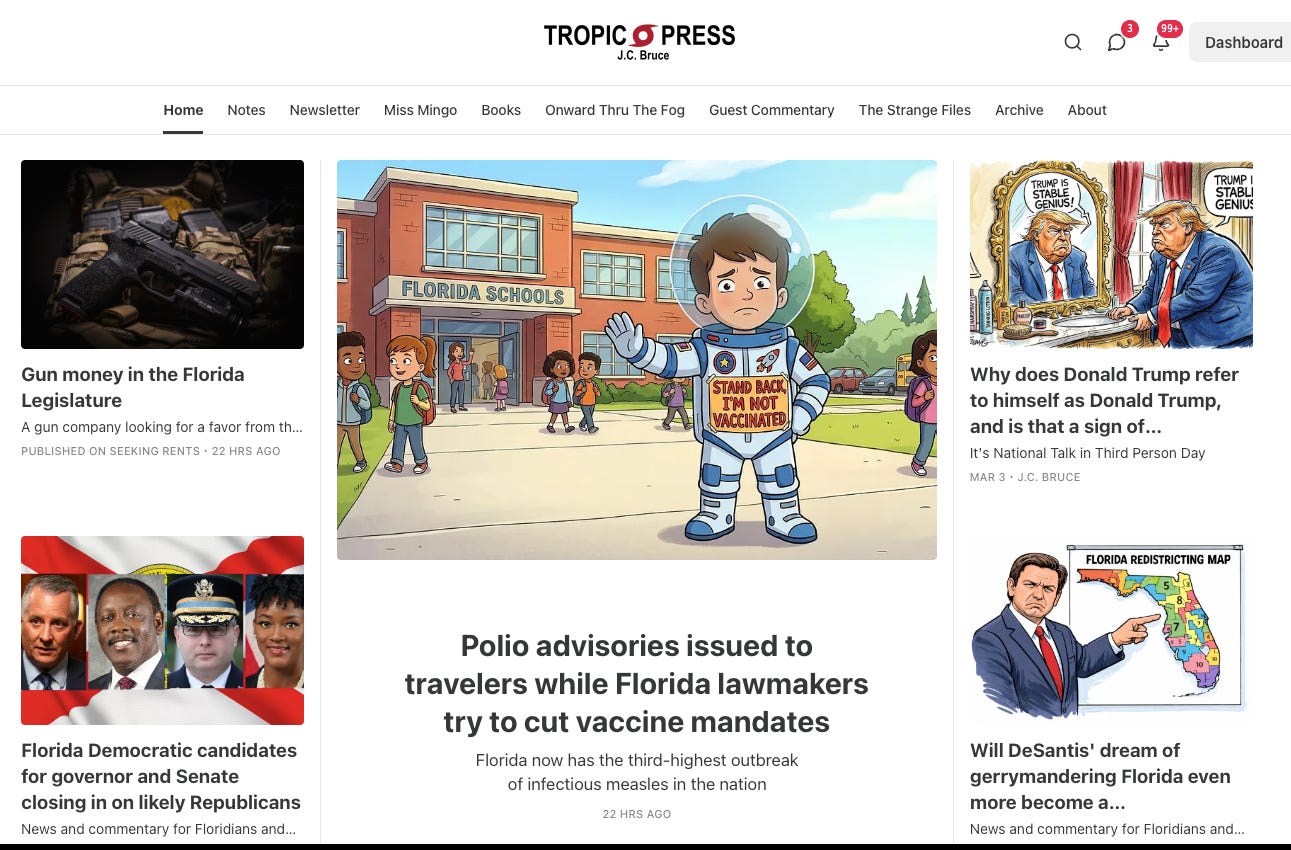 It’s easy to feel overwhelmed if you are a rational person living in the Free State of Florida, but there are plenty of smart, reasonable people just like you here. The purpose of this newsletter and the Tropic Press website is to provide a source of news and commentary that shines a light through this irrational fog. That includes both original reporting, like today’s report, and shared stories from other sources.