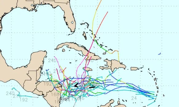 The National Hurricane Center still has its eye on the Caribbean disturbance that could become Tropical Storm—or even Hurricane—Melissa. Some forecasts show the weather pattern bending north, as you can see in the spaghetti model above. But it is much too early to know for sure.