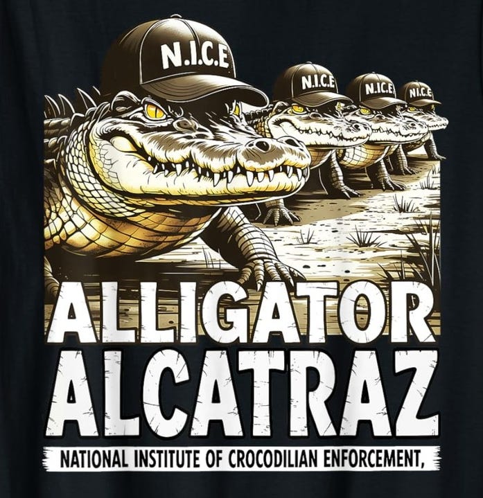He’s the guy who introduced us to the phrase Alligator Alcatraz. Shortly thereafter, we had Deportation Depot, then the Panhandle Pokey — all concentration camps to hold victims of I.C.E. raids around the state.