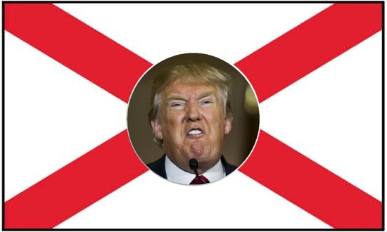 Oh, and our state flag? You know, the one with those crossed red bars, so reminiscent of our Confederate roots, what’s with that silly state seal in the middle? Wouldn’t that be the perfect place for an image of our dear leader?