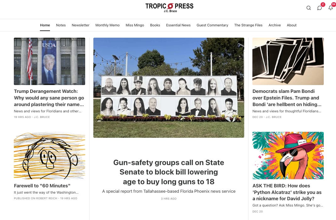 J.C. Bruce is the founder of Tropic Press, a website and newsletter dedicated to Floridians and issues of concern to them. He’s a native of the state and an award-winning journalist and author.