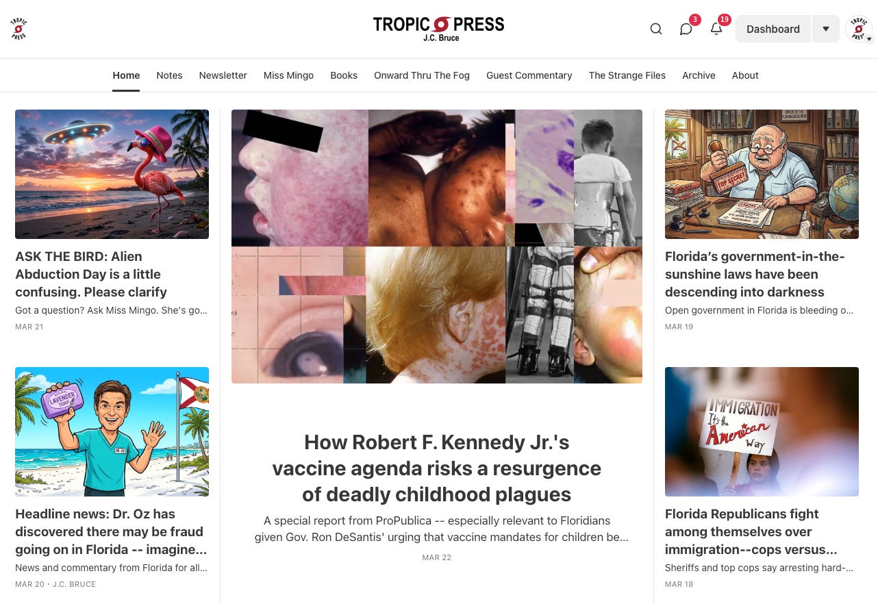 As this newsletter was written, Tropic Press was reaching more than 700,000 subscribers in Florida and elsewhere. With mid-term elections on the horizon, the more people we reach, the more effective we can be in helping turn this country around. You can play a vital role in that effort by sharing this newsletter with friends. If you are reading this as an email, simply forward it. Or you can use the link below. Thanks.