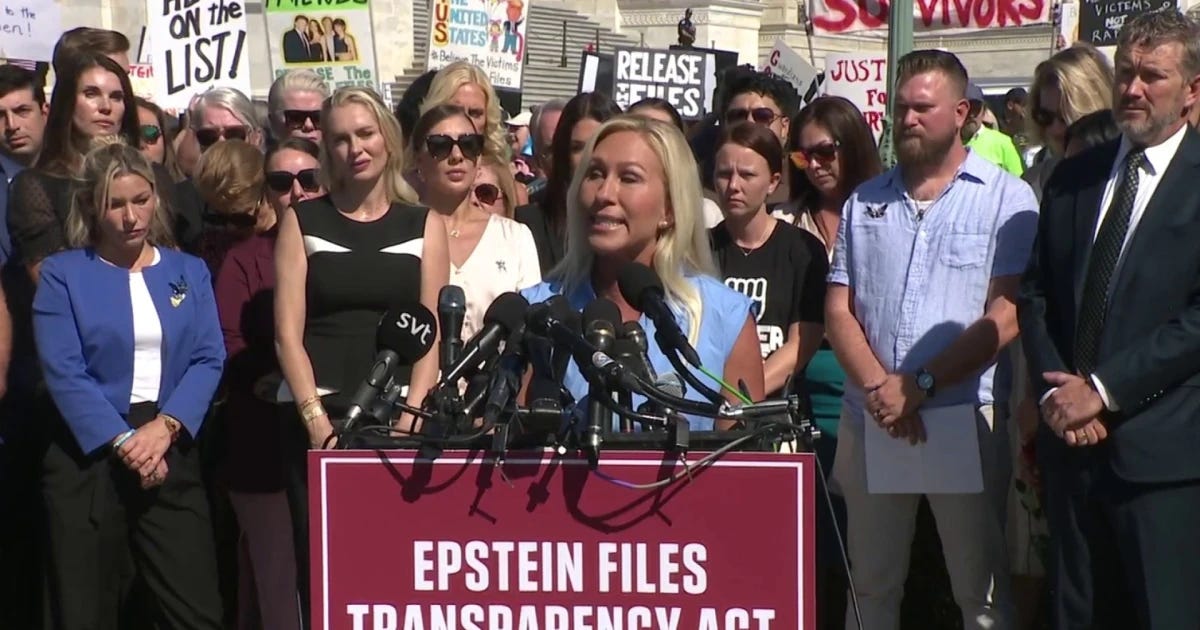 The women were on the steps of the U.S. Capitol, just over a mile away, at an extraordinary press conference in which they pleaded with members of Congress to release the entirety of the Epstein Files.