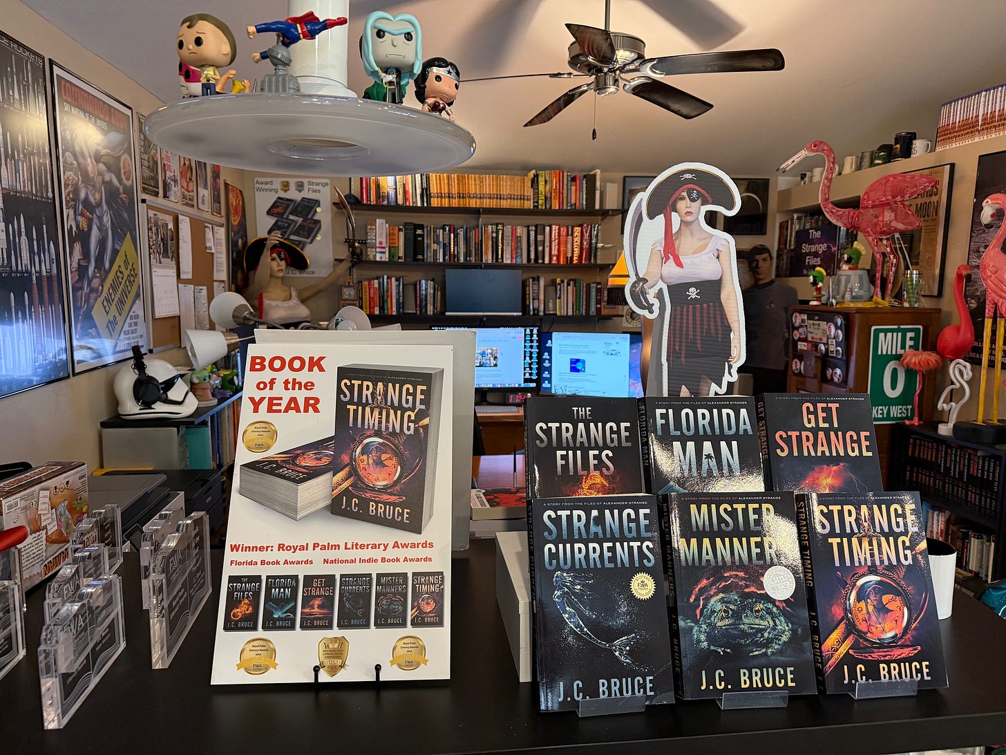J.C. Bruce is a journalist and author of The Strange Files series of mysterious novels (available on Amazon, Barnes & Noble, Kobo, other online booksellers, and at selected libraries). He holds dual citizenship in the United States of America and Florida. His latest novel, Strange Timing, was recently named Book of the Year in the Royal Palm Literary Awards where it also won Gold Medals in the Sci-Fi and Thriller categories. When he’s not writing, he’s in training for the World Underwater Ping-Pong Championships.