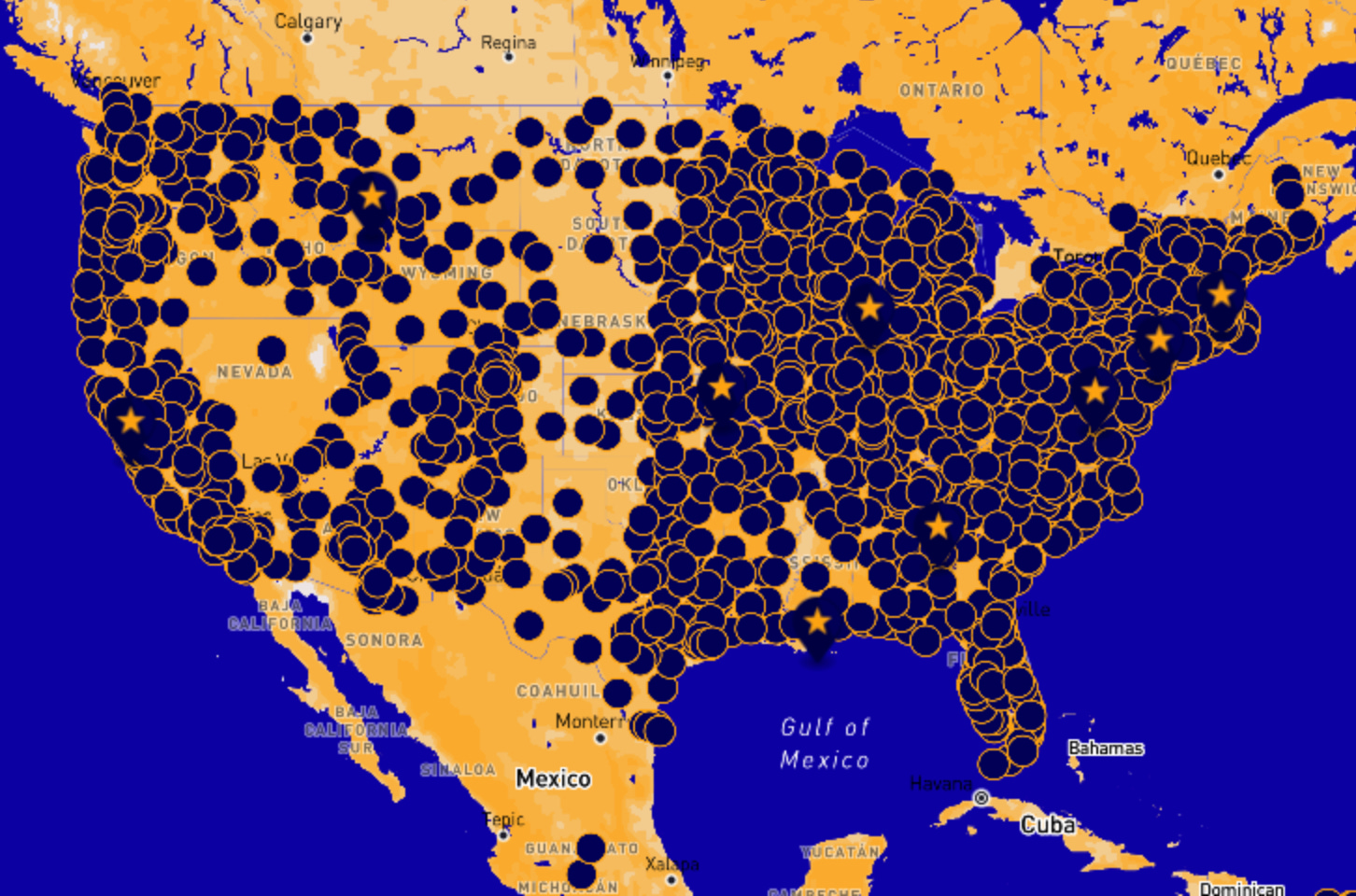 Each of those dots represents the site of a No Kings rally that will take place this coming Saturday (Oct. 18). More than 80 cities in Florida—along with about 2,500 nationwide—will be hosting protests.