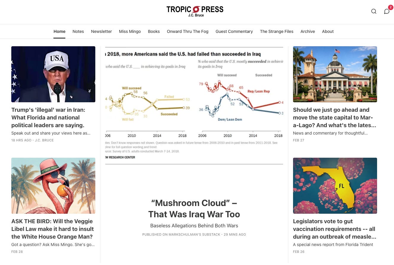 As this newsletter was written, Tropic Press was reaching more than 750,000 subscribers in Florida and elsewhere. With mid-term elections on the horizon, the more people we reach, the more effective we can be in helping turn this country around. You can play a vital role in that effort by sharing this newsletter with friends. If you are reading this as an email, simply forward it. Or you can use the link below. Thanks.