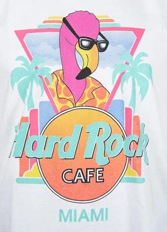 My Hard Rock Cafe tee shirt from Miami is my absolute fave. And guess what’s on the front—yes, a flamingo!