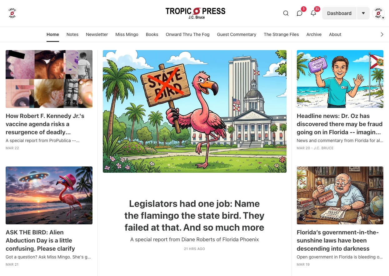 It’s easy to feel overwhelmed if you are a rational person living in the Free State of Florida, but there are plenty of smart, reasonable people just like you here. The purpose of this newsletter and the Tropic Press website is to provide a source of news and commentary that shines a light through this irrational fog.