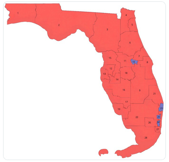 Florida is already one of the most heavily gerrymandered states in the nation with, as noted, the vast majority of congressional districts drawn to favor Republicans—20 out of 28—even though the G.O.P voter registration in the state is not nearly that proportionally dominant.